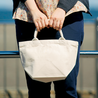 丸みのあるパイプの持ち手がポイントのカジュアルトートバッグです。お財布や小物をいれてランチタイムやちょっとした外出に活躍します。生地もしっかりした厚みのある生地で、コットンのやさしい質感が魅力的です。※エコマーク付