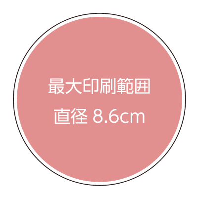 直径9cmのコースターの縁から2mm内側が最大プリント範囲となります。