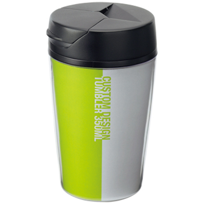 オフィスでも、学校でも大活躍のタンブラーを、オリジナルデザインで作ってみませんか?飲み口を閉じればフラットになるスタイリッシュなデザインです。350mlのうれしい飲みきりサイズ。持ち運びにも便利です。本体耐熱温度100度。