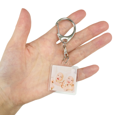 定番正方形キーホルダーにプチサイズが登場しました。スマホで撮った写真もはめ込み簡単。鍵を簡単につけられるナスカン金具付きでお届けします。台紙も付いたOPP袋で個装しております。透明度の高い厚さ3mmのアクリル板に直接印刷します。印刷した台紙をアクリルケースに挟むタイプではありませんので、雨に濡れても滲んだりはしません!水没しても大丈夫なので安心してお使いいただけます。台紙つきのOPP袋で個装します。