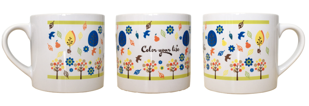 ※昇華転写は白インクがないため、デザインデータの白色部分はマグカップの本体色が出ます。