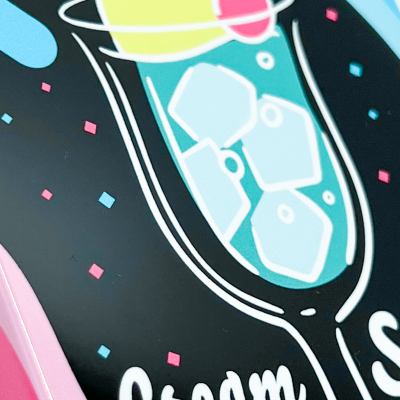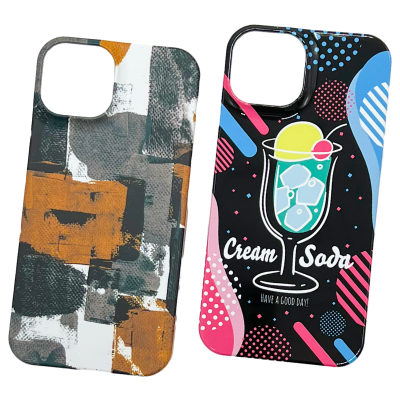 スマホのハードケース表面はもちろん側面や裏面の巻き込み部分までもフルカラーでプリントできます。デザインをあらかじめプリントした専用の転写シートをケースに巻き付けて高温でインクを昇華させて転写します。そのためインクがケースに浸透するので、風合い柔らかく色鮮やかに仕上がります。気化した粒子が細かいので写真やCG、グラデーションも綺麗にプリントできるのも特徴です。