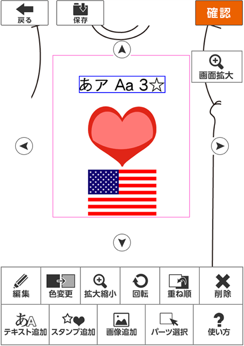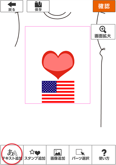 「テキスト追加」ボタンをタップすると文字を入れることができます。