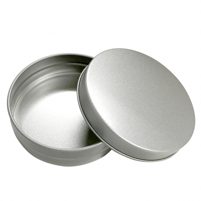 ザラついた素材の丸型の缶です。こちらは中くらいの大きさです。小さいお菓子や小物など様々な用途でお使い頂けます。蓋表面に全面プリントOKなので個性を出せますよ☆